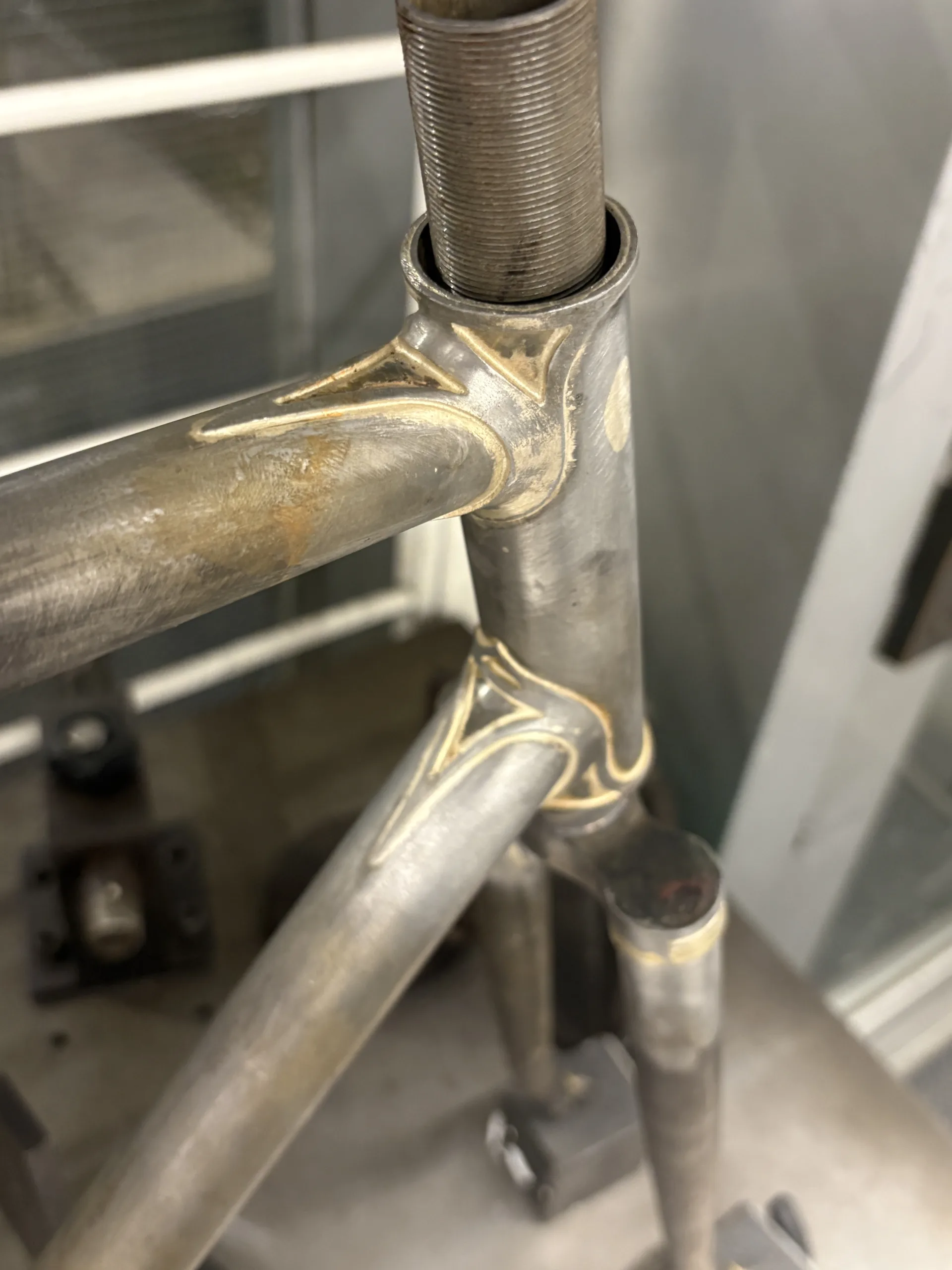 イタ車にありがちなヒゲが長く大胆な肉抜きが施されているラグをブランクラグから制作しました。特にヘッド周りのラグの造形は自分でもかなり気に入っているポイントです。