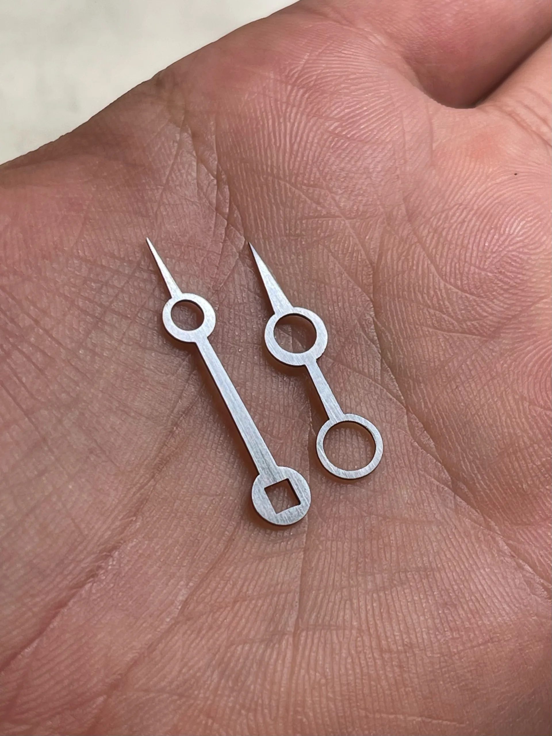 針は糸鋸とヤスリのみで作っています。人間の目は非常に優れていて、ほんの僅かでも形が歪だったりすると変に感じます。今まで培ってきた手先の感覚を最大限に活かして時間をかけて作りました。