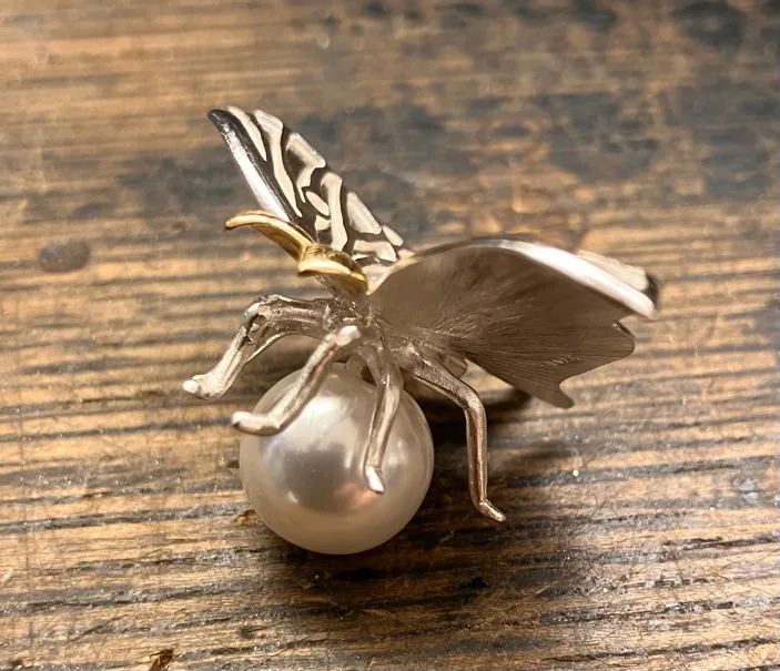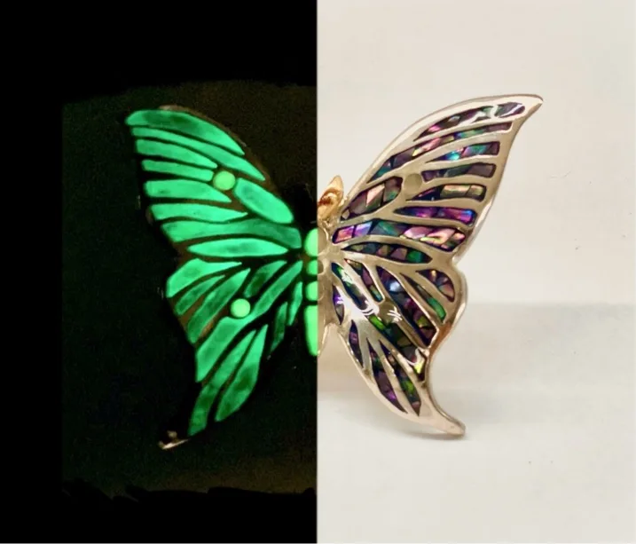 蛾とは蝶と違い嫌厭される存在です。しかし、中には蝶より美しい種もいます。短命であまり知られていない儚い命の輝き。月の女神の名前を着けられるほど美しい蛾。月明かりに輝く一週間の儚い命を永遠にする。陽の下では照らされて美しく、しかし暗闇では自ら輝く月うような作品を目指しました。