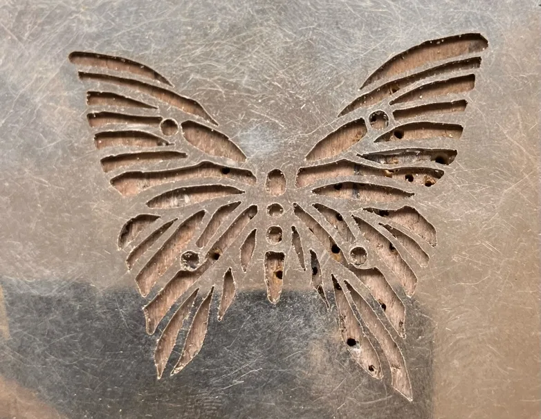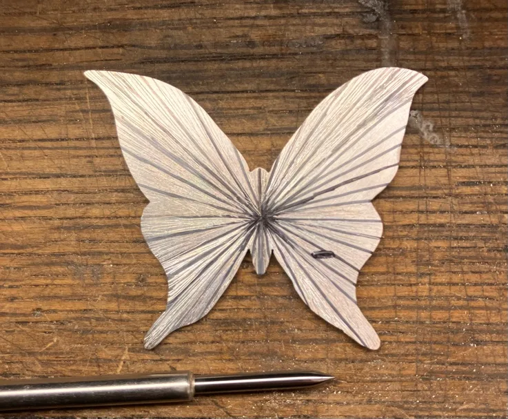 まずシルバーの板に蝶の羽の透かしを入れ。