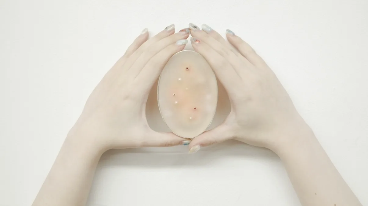 皮膚の表面に起きる炎症をまとめて「湿疹」または「皮膚炎」と呼ばれている。 湿疹は、ただの肌トラブルではなく、心の中の小さな不安が、肌の上にあらわれるもの。この作品は、湿疹も不安も無理に消そうとせず、自分の気持ちとして受け止めること、自分自身を少し大切にすることを表現したいと思う。