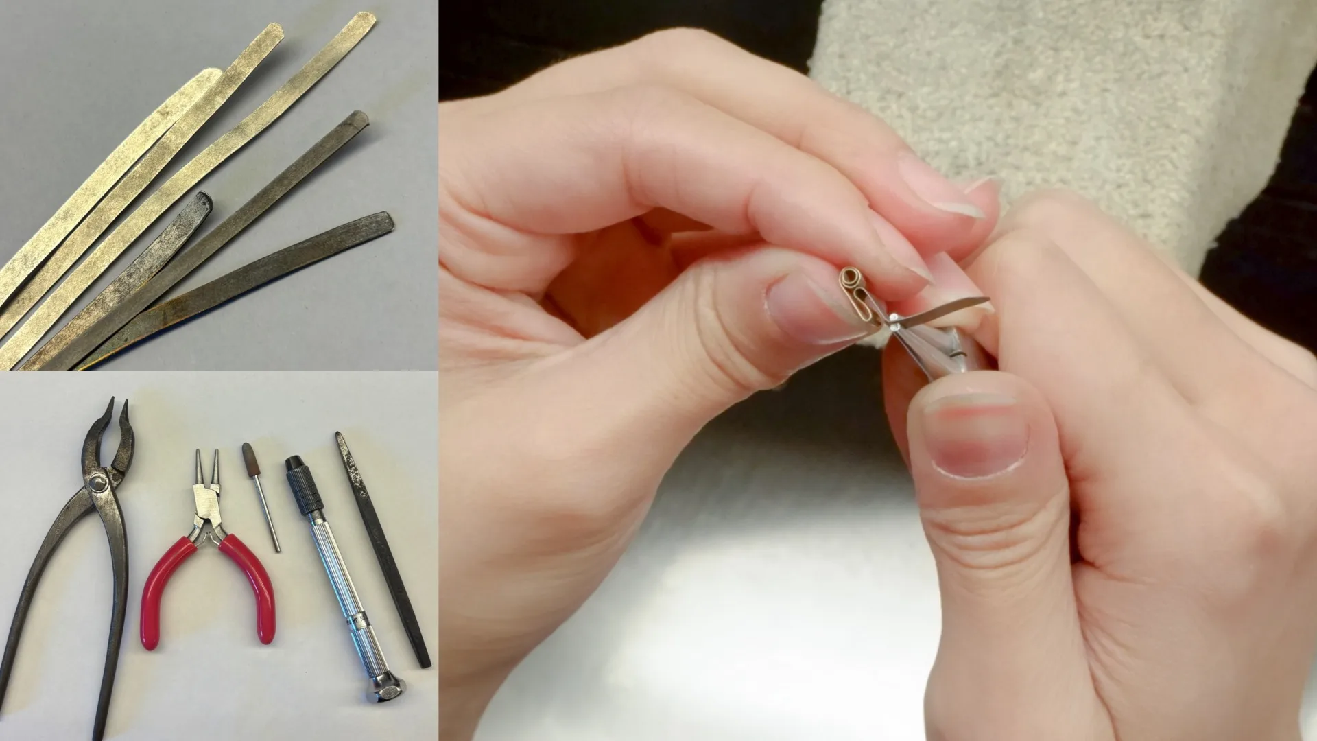 素材はsilver925を薄い板状にしたものを使用しました。丸ヤットコやタガネに巻き付け形成していきました。