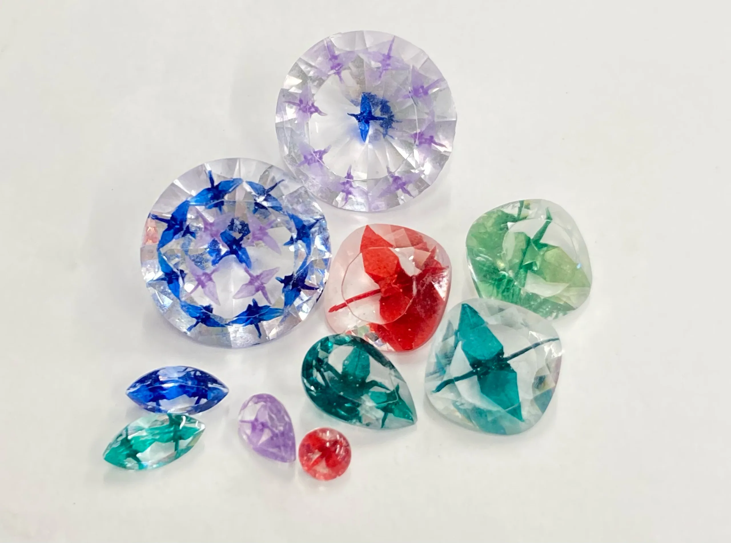 13羽の鶴を樹脂に閉じ込めた宝石。型はシリコンで自作した。