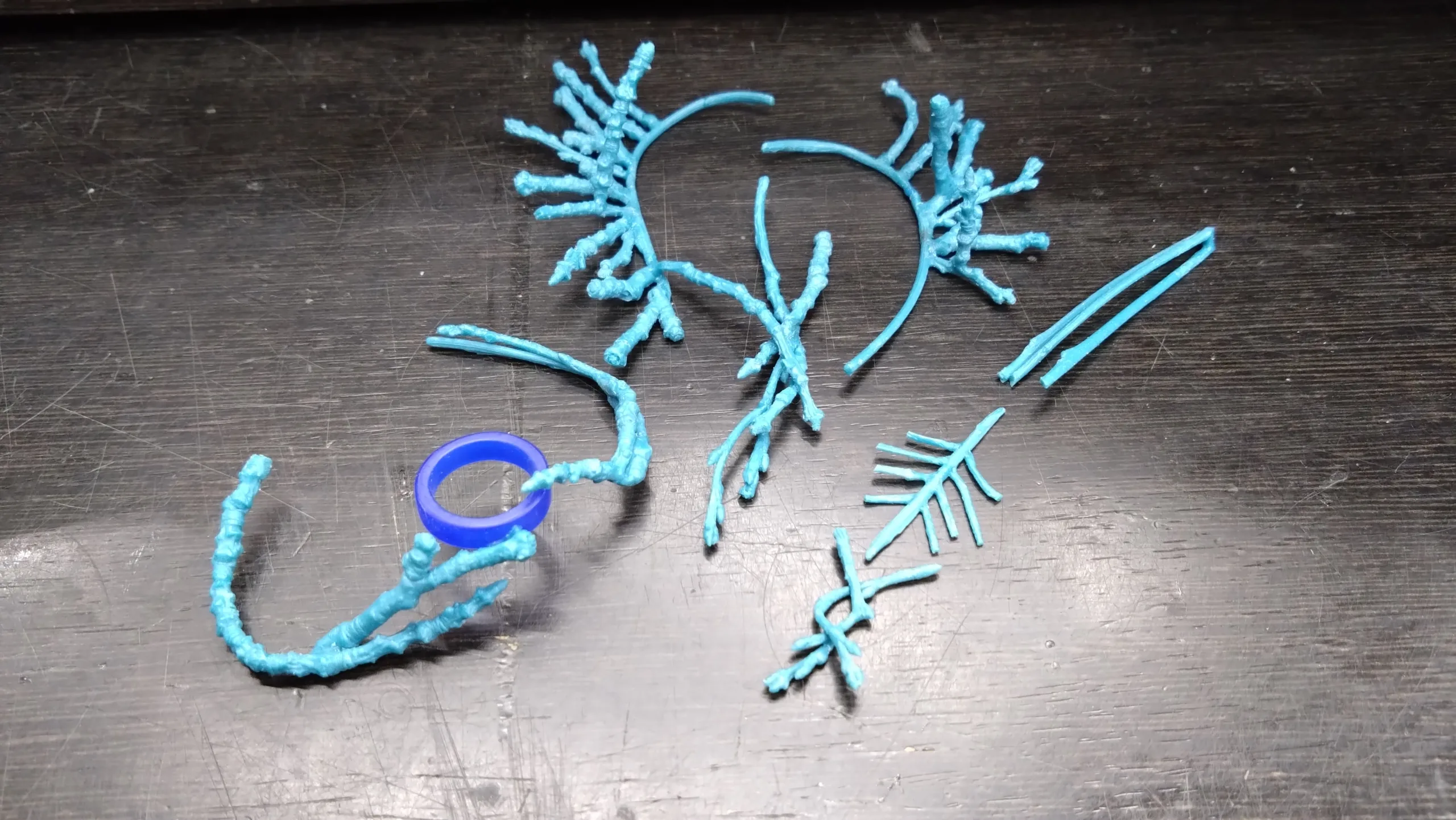 枝の型を取って、液体のWAXを流し込んだパーツをたくさん作る。